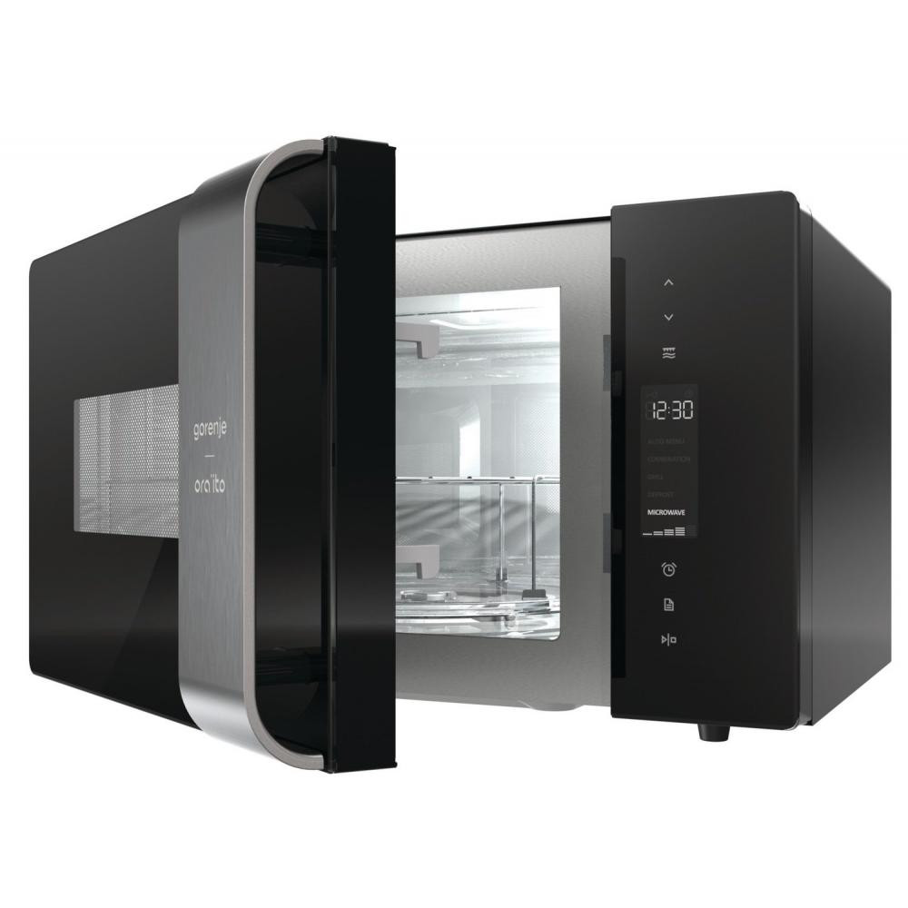 Мікрохвильова піч з грилем Gorenje MO23ORAB виготовлена окремо стоїть з відкриванням дверцята за допомогою ручки. Її внутрішня камера об'ємом 23 літри виконана з нержавіючої сталі і обладнана поворотним столом розміром 270 мм. У приладі встановлено СВЧ-випромінювач потужністю 900 Вт з 5-рівневої регулюванням, що функціонує за стандартною технологією генерації мікрохвиль (HVT). Модель оснащена 6 попередньо встановленими автоматичними програмами приготування. Крім цього, є одинарний гриль потужністю 1200 Вт з кварцовим нагрівальним елементом, який розширює кулінарні можливості пристрою. Завдяки електронному таймері користувач може точно задавати час роботи в обраному режимі. Мікрохвильова піч з грилем Gorenje MO23ORAB зручно управляється електронними кнопками. Вбудована система безпеки блокує роботу моделі при відкритих дверцятах