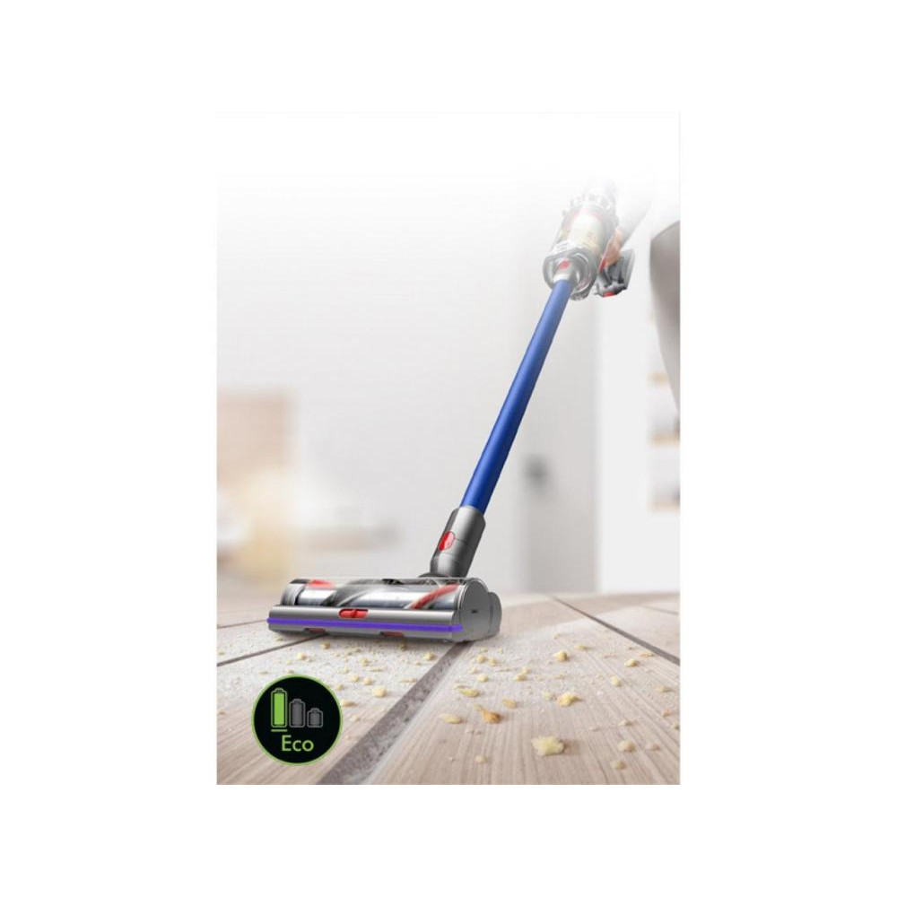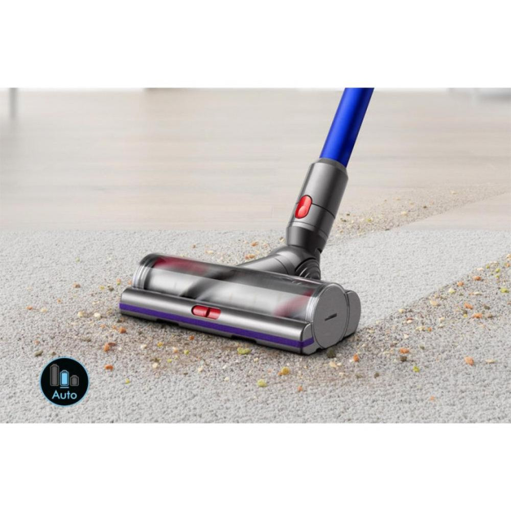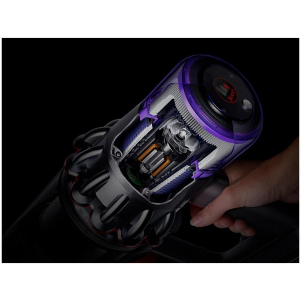 Пилосос 2в1 (вертикальний + ручний) Dyson Cyclone V11 Absolute Extra представляє собою стильну і елегантну автономну модель. У ньому встановлено електродвигун потужністю 545 Вт, що розвиває 125 000 оборотів в хвилину. Мотор підживлюється від знімного акумулятора, який забезпечує безперервну роботу протягом 60 хвилин. Зарядка батареї може проводитися як в складі пристрою, так і окремо. Створювана потужність всмоктування регулюється на корпусі до максимального значення 185 Вт. Вона не залежить від ступеня наповненості контейнера пилозбірника об'ємом 0,76 літра і залишається постійною завдяки циклонічної системі. Пристрій служить для сухого прибирання та укомплектований набором насадок для різних поверхонь і важкодоступних місць. Особливо слід виділити насадку зі щетинками з антистатичного вуглецевого волокна і електричну турбо щітку. Пилосос 2в1 (вертикальний + ручний) Dyson Cyclone V11 Absolute Extra функціонує в трьох режимах: авто, турбо і еко. Зберігається він вертикально на стіні або на підлоги док-станції.
