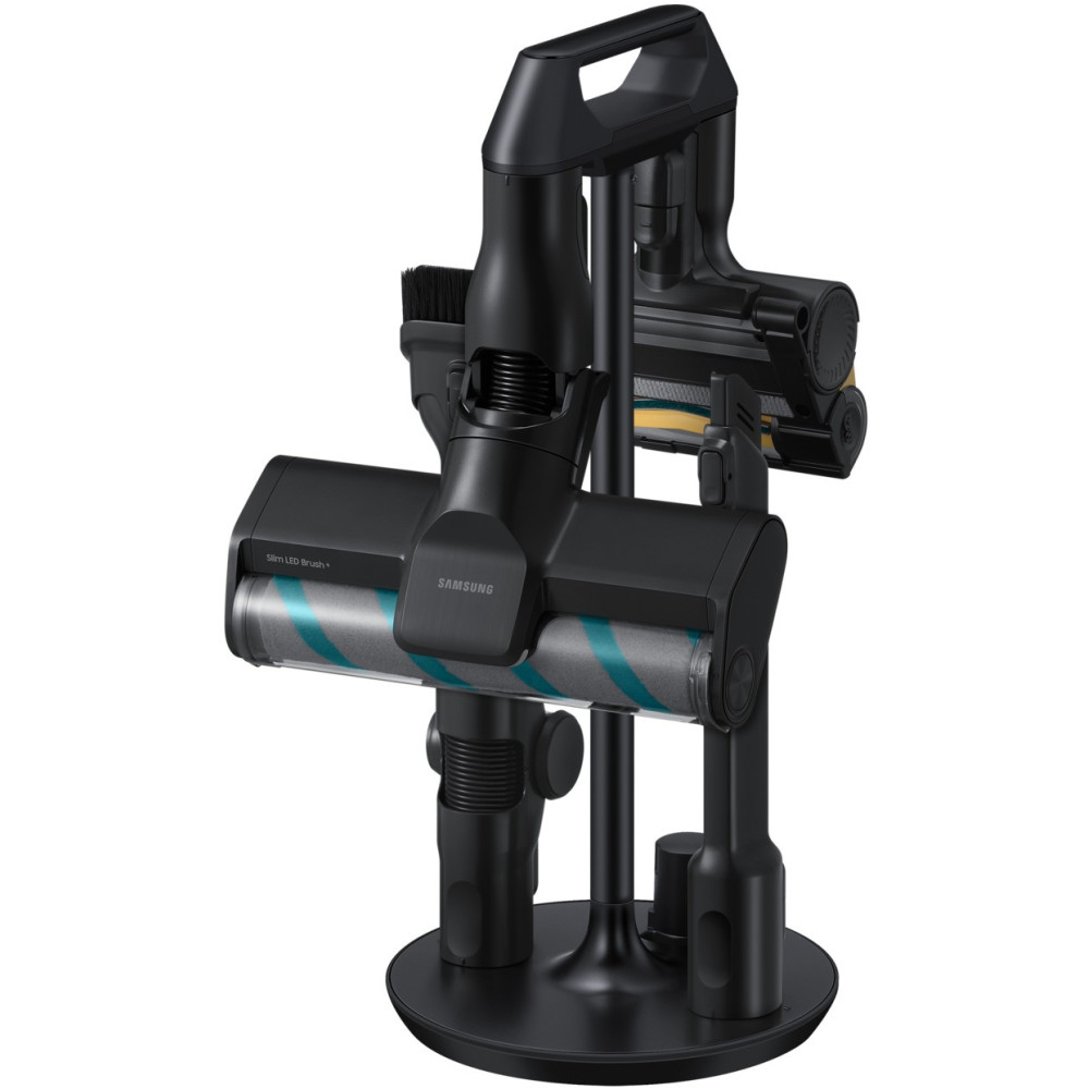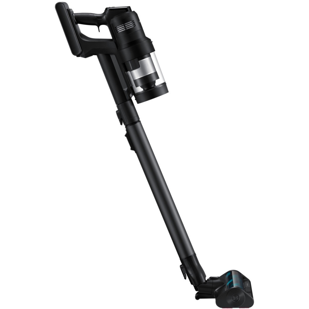 Пилосос компанії Samsung відноситься до категорії просунутої та дорогої техніки для дому і є розумним помічником для сухого прибирання. Це модель з портативним блоком, яку можна використовувати двома способами — як класичний вертикальний пилосос чи компактний ручний, від'єднавши портативний блок від труби. Це значно розширює радіус прибирання: пилосос здатен очищати підлогу, м'які меблі, шафи і навіть салон автомобіля. Двигун HexaJet забезпечує високу потужність всмоктування в 400 Вт, дозволяючи легко збирати пил, волосся, шерсть домашніх тварин і більше сміття. Особливістю пристрою є інтелектуальний режим AI Cleaning 2.0, що розпізнає тип очищуваної поверхні і регулює потужність залежно від цього. Ще однією перевагою Samsung Bespoke AI Jet Ultra VS-90F40DEK/UK стала багата комплектація з насадками для різних задач. Електрична турбощітка Active Dual Brush з підсвіткою ефективно очищає будь-які поверхні завдяки нейлоновим і гумовим щетинам. Щітка Slim LED Brush+ легко маневрує і завдяки підсвітці дозволяє усувати забруднення під меблями. Міні-турбощітка Pet+ очищає меблі від шерсті тварин. Крім цього, в комплектацію входять щелева, пилова і гнучка насадки для прибирання у важкодоступних місцях. Пилосос постачається разом зі станцією, призначеною не лише для зберігання: вона завантажує зібране сміття з пилозбірника і відправляє його у місткий 2-літровий мішок. Крім того, до корисних функцій моделі входять система HEPA-фільтрації, дисплей з інформацією про обраний режим, рівень заряду акумулятора і несправності, два акумулятори в комплекті, тривалий час автономної роботи (100 хвилин від одного акумулятора і 60 хвилин від іншого) і можливість підключення до Wi-Fi для дистанційного керування зі смартфона.