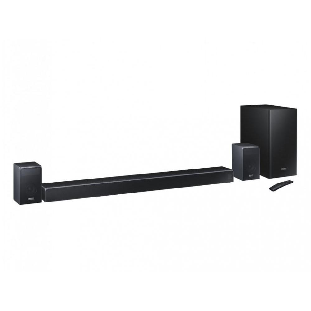 Багатофункціональний саундбар 2.1 Samsung HW-Q90R прекрасно доповнить звук телевізора і дозволить отримати справжній просторовий ефект для кіно, спорту, музики та ігор. Він ефективно управляє всіма випромінювачами, що забезпечує відмінний 7.1.4-канальний імерсивні звук, деталізоване і динамічне звучання. А завдяки 8-дюймовому бездротовому сабвуферу і динаміків на кожному торці звук буде таким же глибоким, як і саме зображення. Звукова панель використовує Bluetooth для бездротового з'єднання з іншими пристроями. Вхід і вихід HDMI дозволяє підключати кілька пристроїв одночасно, в тому числі і ігрову консоль. Samsung HW-Q90R володіє такими функціями, як Spotify Connect і Surround Sound Expansion, за рахунок чого звук поширюється по приміщенню, забезпечуючи більш реалістичні і захоплюючі враження. Автоматична установка оптимальних звукових режимів в залежності від жанру відеоконтенту дозволяє поліпшити чутність голосів акторів навіть при низькому рівні гучності, коли зазвичай голоси ледве чутні. Крім того є оптичний цифровий і USB 2.0 входи, інтерфейс IEEE 802.11 a / b / g / n / ac, WMA, MP3, інтернет-радіо. Пристрій можна поставити на полицю, а також закріпити на стіні.