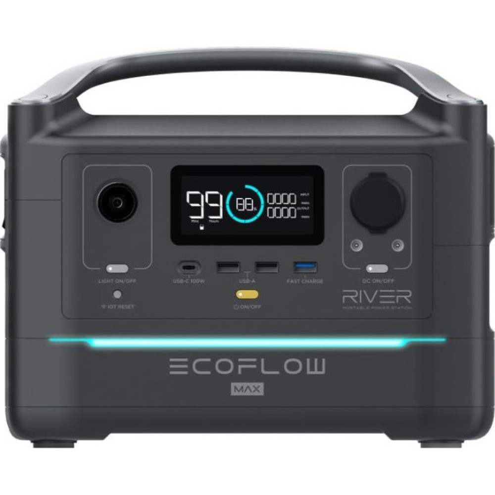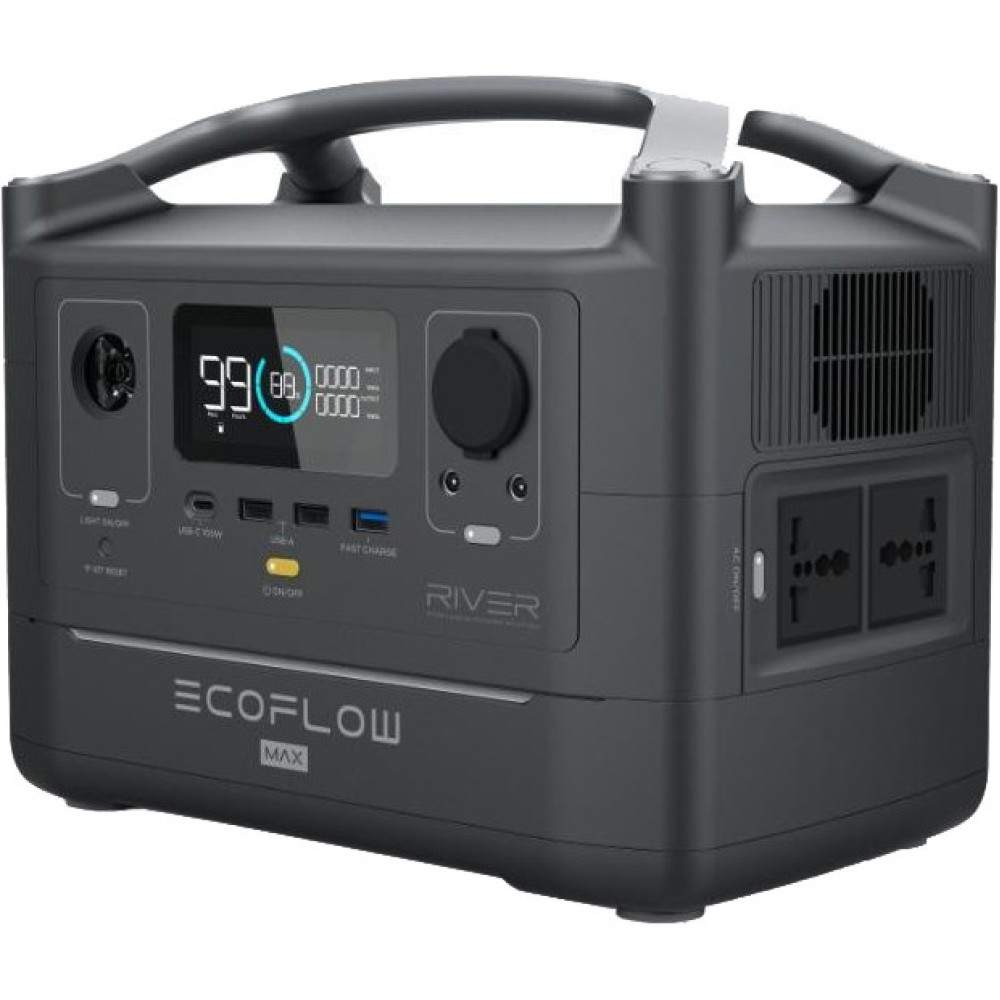 EcoFlow RIVER Max (EFRIVER600MAX-EU) – високопродуктивний та широко функціональний зовнішній акумулятор, здатний забезпечити свободу в електроживленні для багатьох екстремальних ситуацій. Він виготовлений у ретельно продуманому корпусі, доповненому зручною ручкою для транспортування. У EcoFlow RIVER Max (EFRIVER600MAX-EU) застосовуються Li-Ion елементи живлення сумарною ємністю 115 200 мАг. Для підключення та заряджання у пристрої є USB, USB Type-C, автомобільна розетка, а також розетка на 230 В. Додатково зовнішній акумулятор підтримує функцію швидкого заряджання Qualcomm Quick Charge 3.0. Інформація про стан роботи і рівень заряду, що залишився, виводиться на досить великий LED-дисплей на передній панелі. Контролювати стан роботи EcoFlow RIVER Max (EFRIVER600MAX-EU) можна за допомогою мобільної програми. Важливими особливостями зовнішнього акумулятора є можливість заряджання від сонячних панелей, а також можливість використовувати його як UPS. EcoFlow RIVER Max (EFRIVER600MAX-EU) – високопродуктивний та широко функціональний зовнішній акумулятор, здатний забезпечити свободу в електроживленні для багатьох екстремальних ситуацій. Він виготовлений у ретельно продуманому корпусі, доповненому зручною ручкою для транспортування. У EcoFlow RIVER Max (EFRIVER600MAX-EU) застосовуються Li-Ion елементи живлення сумарною ємністю 115 200 мАг. Для підключення та заряджання у пристрої є USB, USB Type-C, автомобільна розетка, а також розетка на 230 В. Додатково зовнішній акумулятор підтримує функцію швидкого заряджання Qualcomm Quick Charge 3.0. Інформація про стан роботи і рівень заряду, що залишився, виводиться на досить великий LED-дисплей на передній панелі. Контролювати стан роботи EcoFlow RIVER Max (EFRIVER600MAX-EU) можна за допомогою мобільної програми. Важливими особливостями зовнішнього акумулятора є можливість заряджання від сонячних панелей, а також можливість використовувати його як UPS. EcoFlow RIVER Max (EFRIVER600MAX-EU) – високопродуктивний та широко функціональний зовнішній акумулятор, здатний забезпечити свободу в електроживленні для багатьох екстремальних ситуацій. Він виготовлений у ретельно продуманому корпусі, доповненому зручною ручкою для транспортування. У EcoFlow RIVER Max (EFRIVER600MAX-EU) застосовуються Li-Ion елементи живлення сумарною ємністю 115 200 мАг. Для підключення та заряджання у пристрої є USB, USB Type-C, автомобільна розетка, а також розетка на 230 В. Додатково зовнішній акумулятор підтримує функцію швидкого заряджання Qualcomm Quick Charge 3.0. Інформація про стан роботи і рівень заряду, що залишився, виводиться на досить великий LED-дисплей на передній панелі. Контролювати стан роботи EcoFlow RIVER Max (EFRIVER600MAX-EU) можна за допомогою мобільної програми. Важливими особливостями зовнішнього акумулятора є можливість заряджання від сонячних панелей, а також можливість використовувати його як UPS.